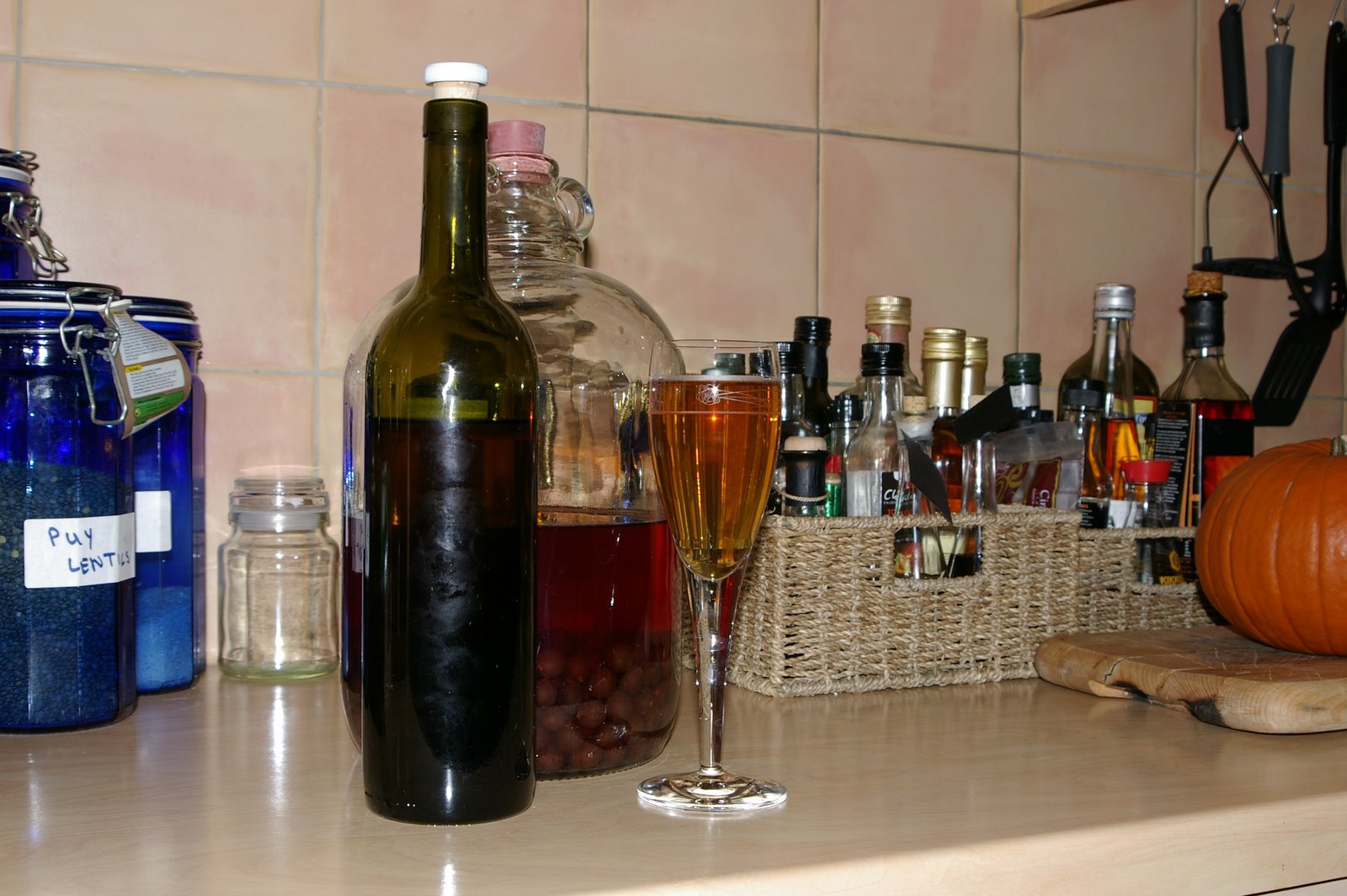 Fig wine colour co-ordinating with a pumpkin and my maturing Sloe Gin.