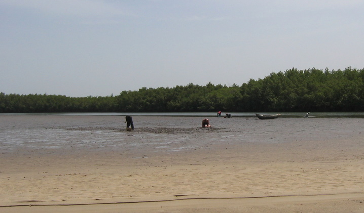 On a boat trip we stopped off on a sand bank, already occupied by four local women digging in the hot sun for mussels, to let the tourists swim in the creek. To escape the inane tourist gibbering I walked the length of a football pitch to the end of the sandbank. Here, where the soft warm breeze brushed my face, I listen to oystercatchers, whimbrels and the chatting of the local women. On the way back to the boat I noticed one of the women watching me. I gave her a wee wave and she mirrored my wave in return, it was a very serene moment.