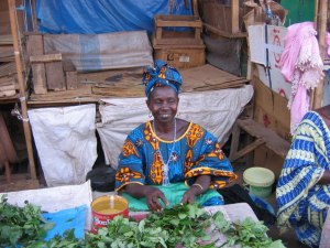 Serrekunda Market, this lady was selling cassava leaves for cooking