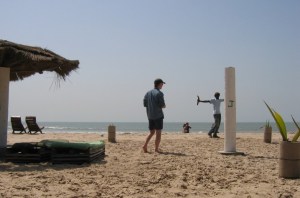 The next day we decide to walk along the beach to the main resort Senegambia. Easier said than done. One of the biggest problems the Gambian Government has with its tourist industry is Bumsters. The guidebooks describe these young school drop-out boys as touts, fixers, chancers, gigolos, wheeler-dealers and informal guides. They have a highly developed sense of self worth and believe they have a right to interrupt your holiday with their agenda driven chat. As soon as we walk onto the beach we were approached by bumsters. They want to shake your hand, they want to be your friend. The advice is that they are harmless and the best way to deal with them is to be friendly but firm. This is all very well and most people try that but it is so intrusive that by the time we had walked the length of one stretch of beach we had shaken the hands of more than thirty boys and had no time to ourselves. It was like going into combat the moment you walked out the hotel and far from enjoyable, which is a shame because our beach, Kololi Beach, has stunning white sands and huge Atlantic rollers crashing into shore.