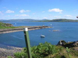 Bute has a short/long distance route – The West Island Way – This meanders round coast land, through forests and roadside paths for thirty miles, giving the feeling of a long tramp but never far from the main town of Rothesay. The views are towards the mainland and Cumbrae on one side and Arran on the other. Good fish and chips too.