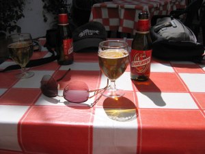 All the streets are beautifully cobbled and there are no potholes! Shops are unobtrusive. They look like houses, no advertising or Tescos or other big supermarkets. No boy racers, no neds. There are loads of old men, as well as old women; not something we see so much of in Scotland. And most walked everywhere with the use of only a stick. I saw no zimmers or tri walkers. It must be all that olive oil. Real chips made from real potatoes. Small beers not whopping great pints. Fabulous vino de casa at an average price of €8.