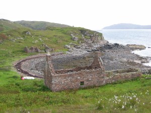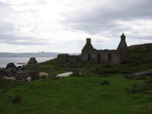 I have never visited St Kilda, but the landscape I imagined outside the walls of the prison can also be found in the ruined croft sites from the Highland Clearances of the 18th and 19th century, when wealthy landowners cleared crofters from the land and burned their homes to make way for sporting estates and sheep. ‘Ruin’ is said to be the most commonly used word on the Ordnance Survey maps of Scotland so there are plenty of sites to choose from particularly around the west coast and the island of Skye and Mull. The Highland Clearance is a perfect example of the history of oppression on one section of society by another.